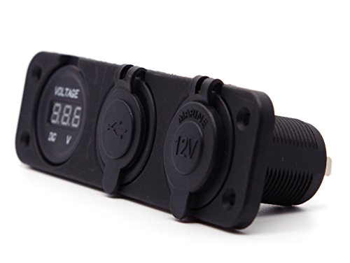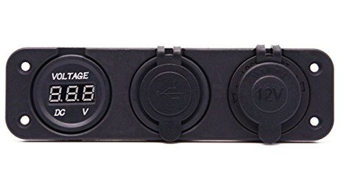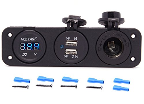 Cllena Triple Function Dual USB Charger + Blue LED Voltmeter + 12V Outlet Socket Panel Jack Marine For Digital Devices Mobile Phone Tablet