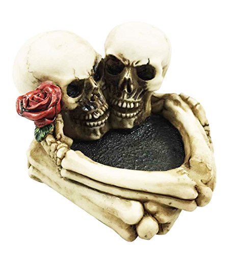Love Never Dies Eternal Skeleton Couple With Rose Cigaretter Heart Ashtray Resin Figurine Skull