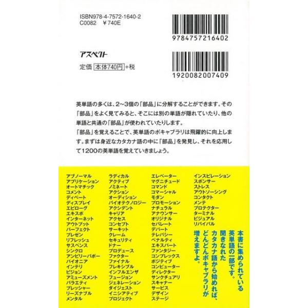 【商品説明】 定価(税込み):799円 値引き:5% OFF よく知っているカタカナ語を遊び感覚で分解してみよう。共通の「部品」が見えたら、どんどんボキャブラリが増殖します。「部品」を応用すれば1200の英単語を覚えていくことができます。 バーゲンブック 新品 特価 格安 語学 辞書 英語 えいご 洋書 遊び |