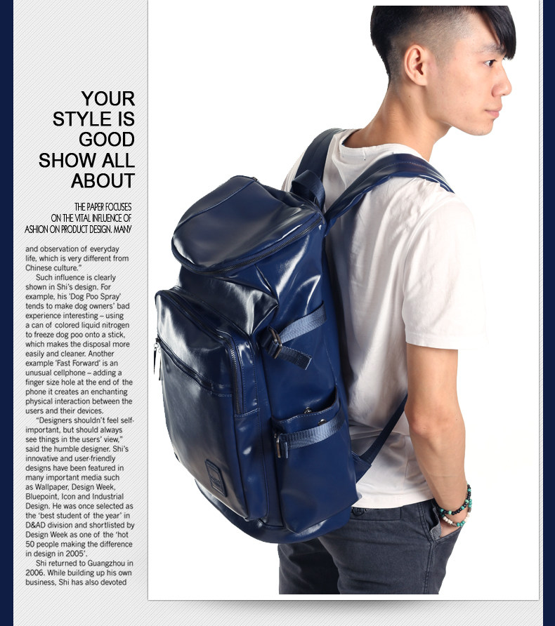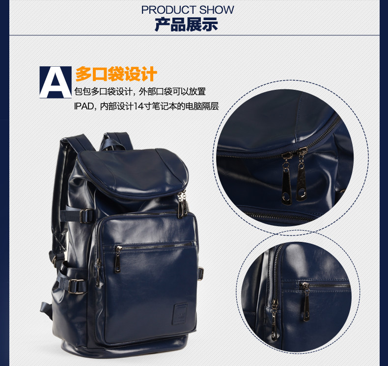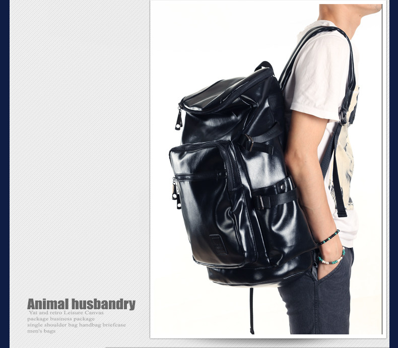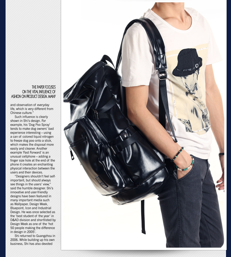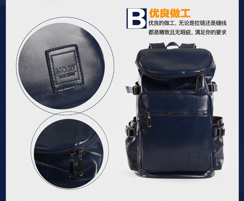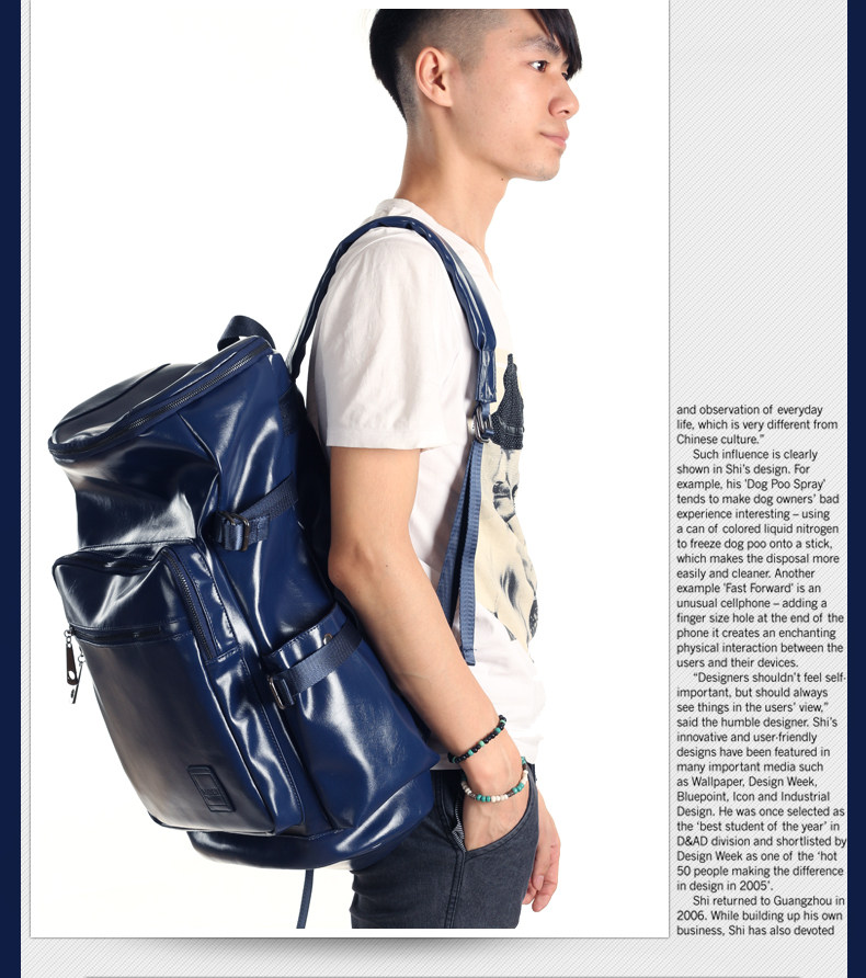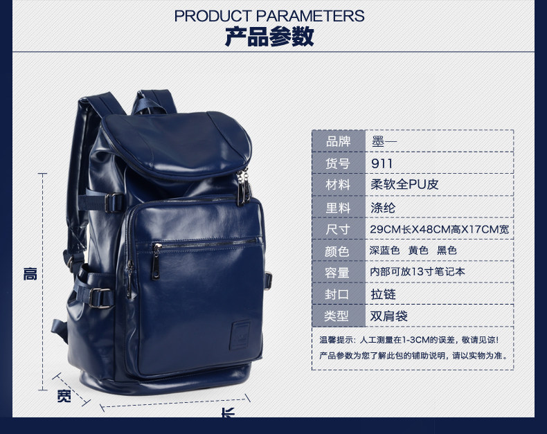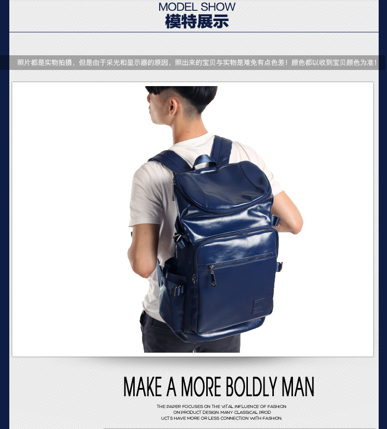 墨一韩版潮男学院风pu皮包 双肩书包旅行大包学生包男士背包男包