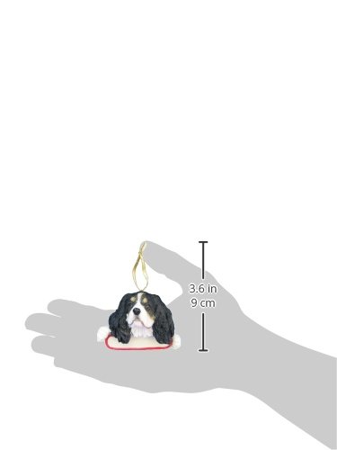 King Charles Cavalier Ornament Tri Color"Santa's Pals" With Personalized Name Plate A Great Gift For King Charles Cavalier Lovers