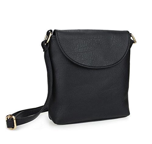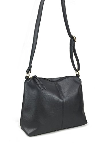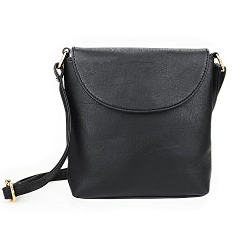 Hoxis Travel Grain Soft Faux Leather Mini Duffle Crossbody Shoulder Bag for Womens (black)