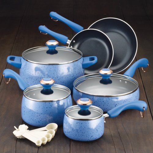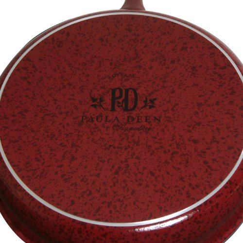 The size of this 12-inch skillet makes it the perfect pan for cooking big batches of the family's favorites like sloppy joes or chicken fingers. The fun, speckled color will look great in kitchens in the country or city, and the long-lasting nonstick interior will be appreciated for making cleanup a cinch. This Paula Deen Porcelain Nonstick deep skillet is durable, high-performing and comes in charming colors that let cooks express their personalities. The heavy gauge construction of the skillet heats smoothly and quickly, eliminating hot spots that can burn foods. Also noticeable is the long-lasting DuPont Teflon Select nonstick interior, helping foods release easily with every use. The porcelain exterior is colorful, durable and easy to clean. Dual riveted for additional strength, the soft-touch handle brings comfort to the kitchen; it is color coordinated to the cookware exterior for that extra bit of style and features a convenient copper-plated hanging ring for a range of storage options. Best of all, this deep skillet is oven safe to 350-degree f.Feature