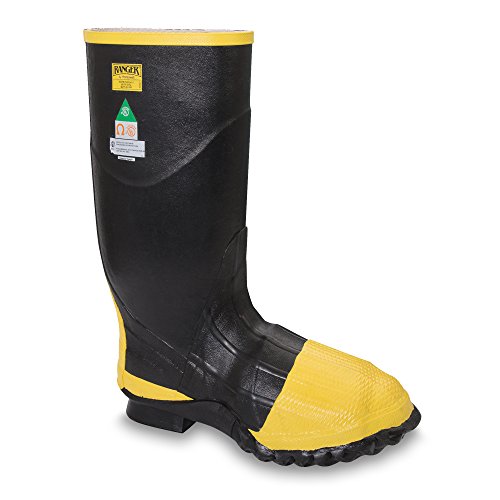 Studio : Sperian Protection Group Publisher : Sperian Protection Group Binding : Tools Home Improvement Product Description Ranger's Turtleback full metatarsal guard rubber boots act as armoblack foot protection providing a barrier to hazards on all sides. Knurled, high-abrasion metatarsal and heel overlays for longer service. Outsoles are high-abrasion rubber for durability and longer wear. Specialized compound prevents ozone deterioration. Anchoblack metatarsal guard. Heavy Trac Tread sole and heel. SAFE-STEP puncture-resistant steel midsoles for maximum protection under foot. FOOT FORM contour cushion insoles. Ultra-composite shanks reinforce construction and support the arch. Steel toe, metatarsal guard and steel midsole meet ASTM F2413-05. Available in black color and men's size-13. 0