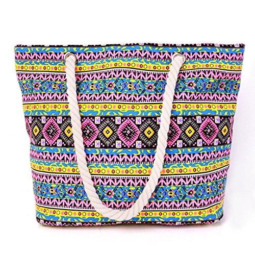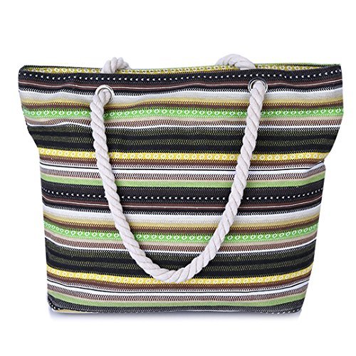 CY Large Shoulder Handbag Canvas Shopping Bag Rope Handle Tote Bach Bag with Zipper Pocket