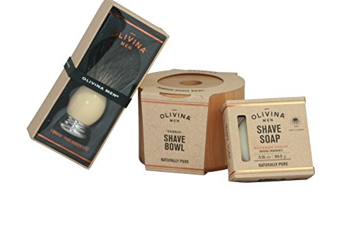 Olivina Men Bamboo Shave Bowl, Shave Soap, and Shave Brush Gift Set