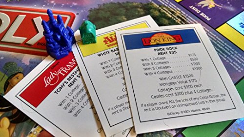 - Feature : Monopoly Disney in Tin 2001 Version / metal Disney Theme movers / Disney themed money / 32 white rabbit cottages & 12 sleeping Beauty Castles / 16 magic moment cards & 16 show time cards