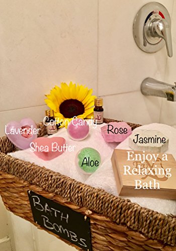 Natural Therapeutic Bath Bombs for Kids, set of 6 with organic vegan lavender, Shea Butter, Rose, Jasmine, Cotton Candy, Aloe that makes fizzy bubbles in the hot...