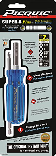Picquic 98881 Carded Super 8 Plus 7 Multi Bit Screwdriver Nutdriver, Blue