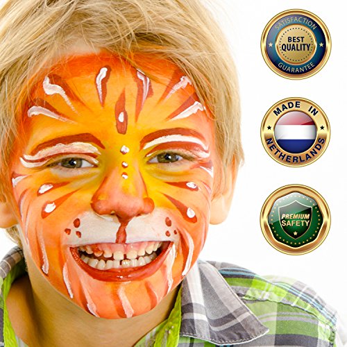 ✅SAFE AND NON TOXIC METALLIC FACE PAINT KIT FOR KIDS & ADULTS - If you care what you're using on your sensitive face or body, this professional metallic face painting kit is perfect for you! Grimas metallic body paints palette use only fragrance free, non toxic & hypoallergenic and gluten free ingredients. Made in the Netherlands.