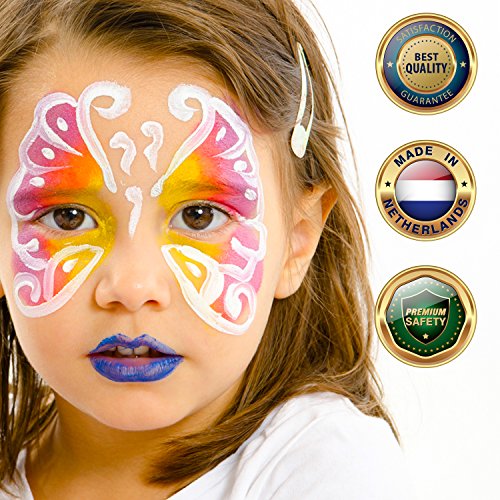 ✅VALUE PACK - When you order your face metallic paint kit today, you'll receive 12 metallic colors for face and body paints, 1 brush with natural hair for face painting and 4 high density sponge. This awesome professional metallic face paint kit can be used with success by non-professionals and also can be offered as a birthday gift.