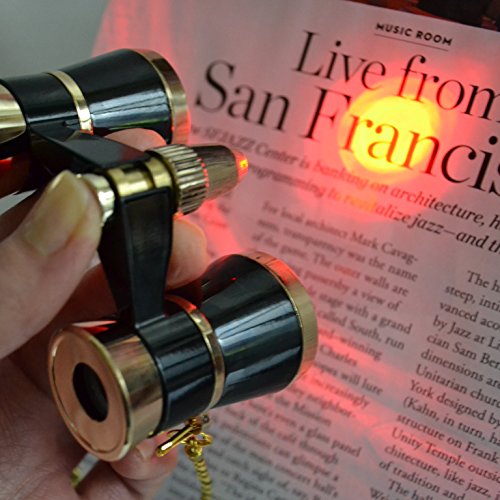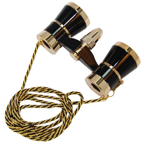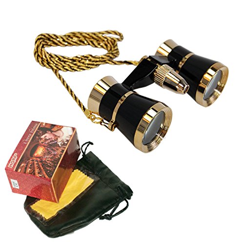 HQRP 3x 25 오페라 글라스 /쌍안 블랙with Golden트림과 골드 목걸이망원경 오페라 글라스