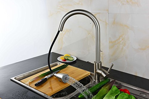 Best Commercial Stainless Steel Single Handle Pull Down Sprayer Kitchen Faucet, Pull Out Kitchen Faucets Brushed Nickel