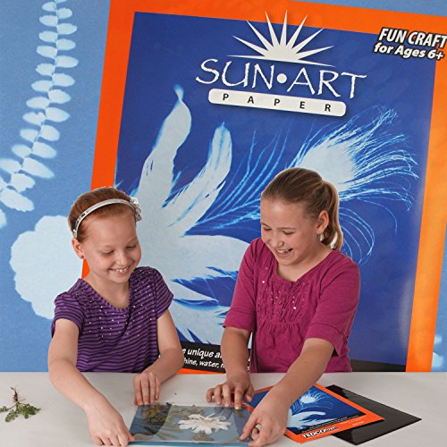Studio : Tedco Publisher : Tedco Binding : Toy Product Description Cyanotypes are photographs sometimes known as blueprints, sunprints or sunlight prints. A photogram is a photographic image made without the use of a camera by placing objects on light-sensitized paper. Sun art prints are also called shadow prints or "Rayographs" after the artist Man Ray. Cyanotype paper is a light-sensitive coated paper. Step 1: Select item(s) such as leaves, flowers or objects found around the house. Arrange a composition that will fit the size of the paper. You can even use negatives but it can take up to 2 hours for exposure. Step 2: Assemble in this order: Surface or cardboard for the bottom SunArt Paper - blue side up (keep away from direct sunlight) Chosen item(s) Acrylic sheet which holds items in place (Peel protective coating from acrylic sheet before use) Step 3: Expose to the sunlight until SunArt Paper turns a very light blue. Approximately 1-5 minutes, depending on sunlight. Stay away from shadows. Step 4: Once the SunArt Paper has turned a very light blue, carefully slide the paper out from backing board and your objects. Quickly rinse the SunArt Paper with water for about one minute. The image will turn lighter during this process. To obtain darker, more intense blue tones, simply add a few drops of lemon juice to a tray of water. Use the tray to rinse your exposed SunArt Paper. Step 5: Place the rinsed SunArt Paper on a flat surface or paper towels to dry. See your beautiful solar photograph darken to a richer blue as the SunArt Paper dries. To flatten, simply place the completely dried sheet under a book for 1-2 days. Do not try to flatten your print before it is completely dry. Use only as directed. Adult supervision is recommended. 0