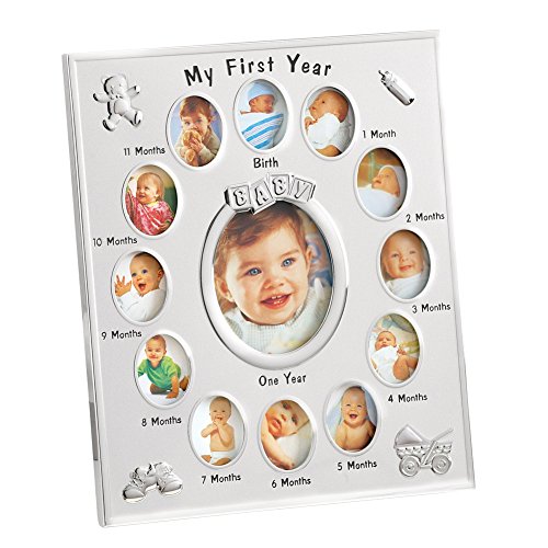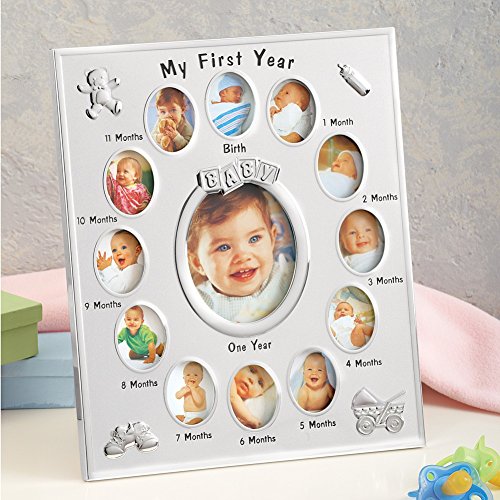 Studio : Collections Etc Publisher : Collections Etc Binding : Toy Product Description My First Year Baby Multi-Picture Frame Description Celebrate your baby's first year with this beautiful picture frame. Oval openings showcase your photos from birth through 11 months old, and the large opening in the center is reserved for the One Year picture. Surrounding the openings are embossed images including a teddy bear, baby shoes, bottle and baby carriage. Aluminum and glass. Frame is 11 3/4"W x 9 3/4"L. Holds twelve 1 1/2"x 2" photos and one 4" x 4 3/4"center photo. No Risk Purchase, Hassle-Free Returns - 100% Satisfaction Guaranteed With customer satisfaction as our number one priority, we proudly offer a Satisfaction Guarantee for all of our merchandise and services. From our appealing merchandise and incredible values, to our friendly customer service, we strive to provide a positive shopping experience by meeting or exceeding your expectations.If you are not completely satisfied within 60 days of your purchase (see return policy for details).