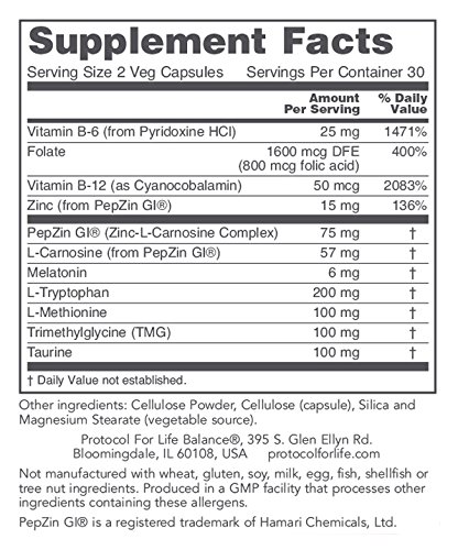 -. Title : Protocol For Life Balance - GI Guard PM - with PepZin GI®, Melatonin, L-Tryptophan & B Vitamins to Support Gastrointestinal System - 60 Veg Capsules