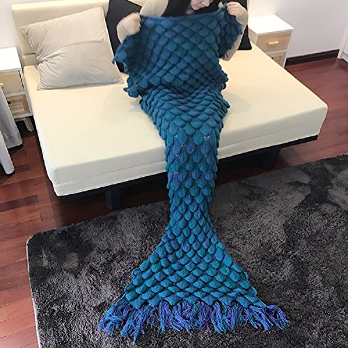 We also sell other styles mermaid blankets in our shop, don't hesitate to click it. Features: 1.This is the most comfortable blanket that you will ever snuggle into. It is expertly crocheted from acrylic fibers that have been designed for ultimate softness, as well as durability. 2.The material is warm yet breathable, making it suitable for all seasons. The mermaid tail blanket is designed to fit all kids and adults comfortably. 3.The slit in the back allows easy use and removal. The material is slightly stretchable which makes for a comfortable fit in any position.