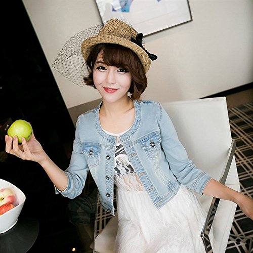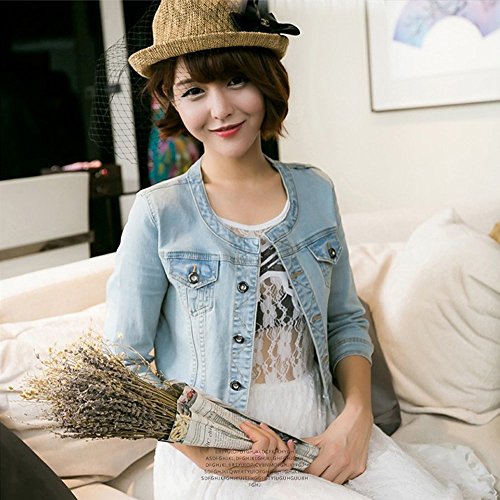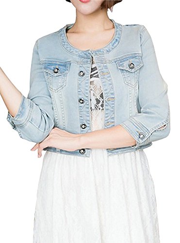 원본상품명: ELPIS レディ?ス キュ?ト ノ?カラ? ショ?ト デニム ジャケット ブルゾン Gジャン ミニ 七分袖 薄手 ライトブル? ダ?クブル? S M L XL XXL(ライトブル?,XXL)