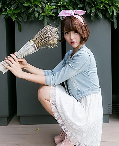 ELPIS 레이디스 큐트 노 컬러 쇼트 데님 재킷 블루존 G잔 미니 7부수박수 라이트 블루 암청색 S M L XL XXL