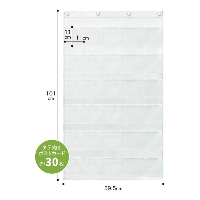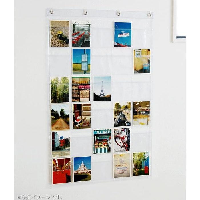 | タテ向きのポストカードが30枚入るウォールポケット♪お気に入りの写真やポストカードを飾って、お部屋のインテリアに。また、店舗用什器や展示会などでのディスプレイにもぴったりです。 |