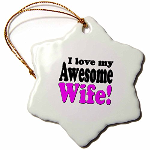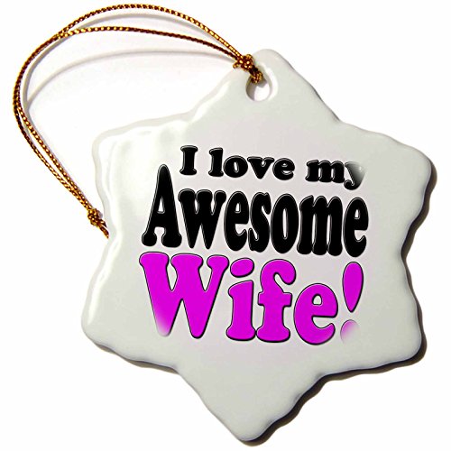 3dRose orn_149861_1 I Love My Awesome Wife Snowflake Ornament, Porcelain, 3-Inch, Pink