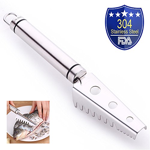 Studio : Amison Publisher : Amison Product Description Fish Scale Remover is made of sturdy 304 stainless steel for making scaling fish easily and fastly without cutting hands, great grip,hook ring design, easy to store, easy to clean, machine washable. It's perfect kitchen scapering fish tool.