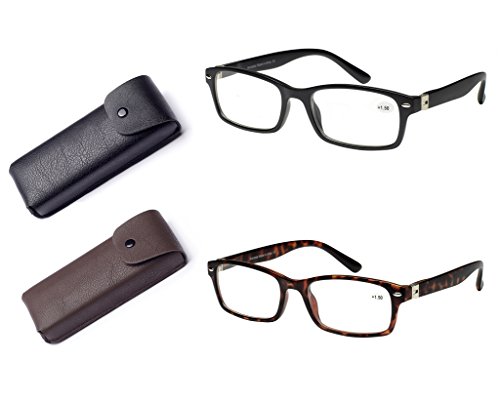 -. Title : Eyecedar 2-pack Metal SP.R.Ing Hinges Reading Glasses Men Rectangle Frames 2-Leather Material Case And Screwdriver Readers glasses