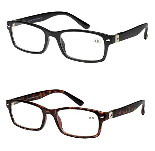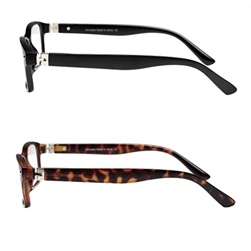 -. Feature : Reading glasses men.18 month warranty and friendly customer service. / Rectangle frames readers glasses.Metal sP.R.Ing hinges arm£¬strong and durable. / 2-leather material case for storage and protection. Include screwdriver and cleaning cloth. / 2 pairs includes black and shine tortoiseshell. / Lens height: 1.3", lens width: 2.0", bridge: 0.7", temple length: 5.4", total width:5.3".