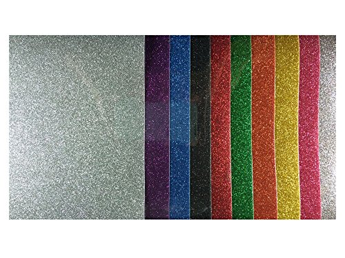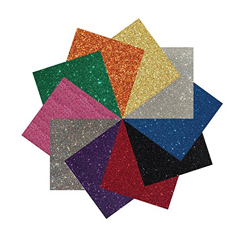 Glitter Heat Transfer Vinyl-HTV Sheets 10 Most Popular Colors 9.84" x 9.84" Starter Bundle EASY TO WEED Iron-On/Heat Press Variety Pack for Silhouette Cameo Curio Portrait Cricut Explore Gold, Silver