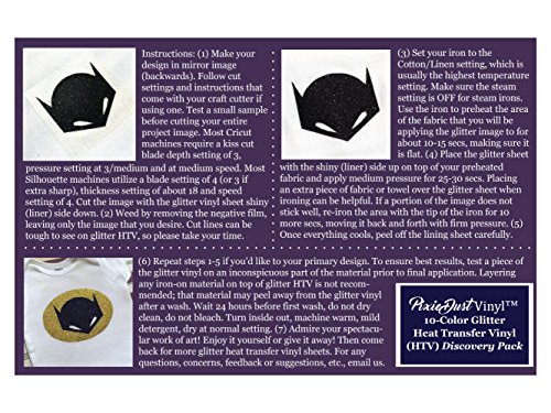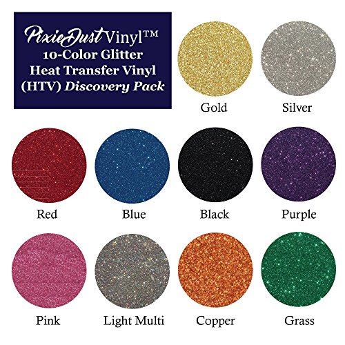 - AWESOME GLITTER COLOR BUNDLE comes with the 10 most popular and versatile glitter iron-on heat transfers measuring approximately 10" x 10" including Gold, Silver, Red, Blue, Black, Purple, Pink, Light Multi, Copper (Orange) and Grass (Kelly) Green