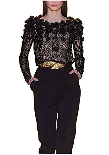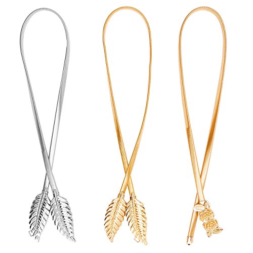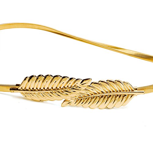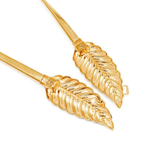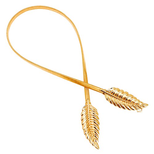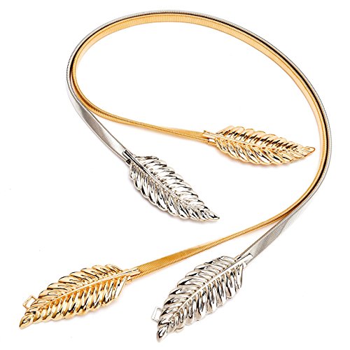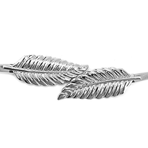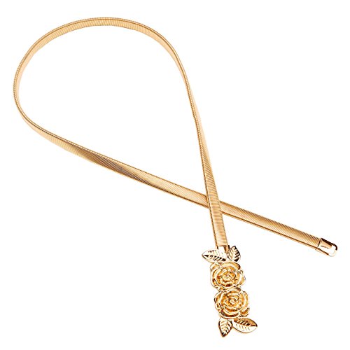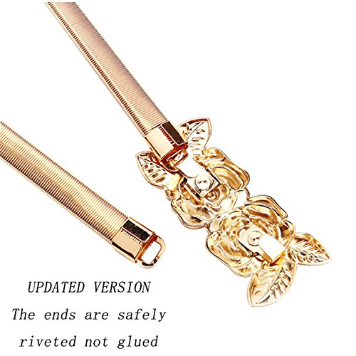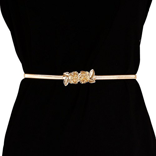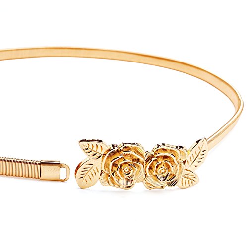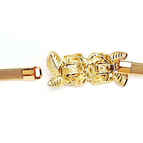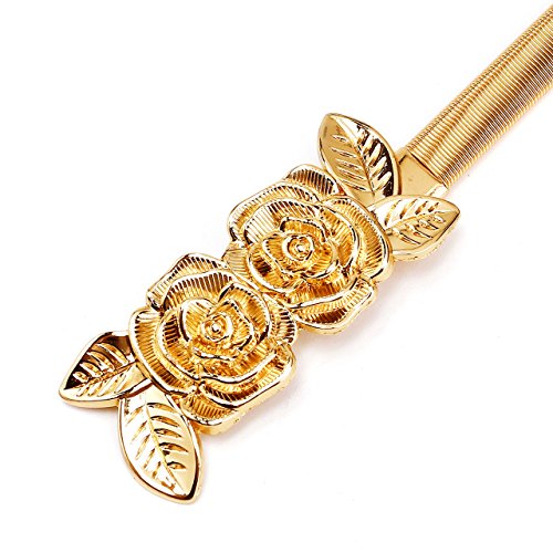CHIC DIARY Women's Metal Leaf Rose Stretchy Elastic Waistband Waist Strap Belt for Dress