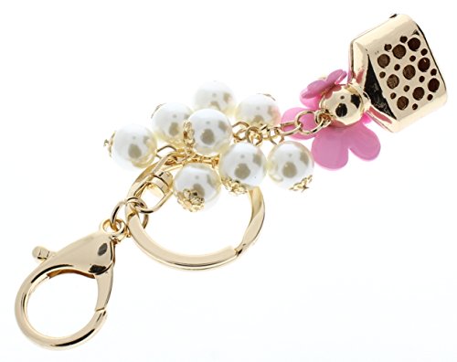 (T Square)/Accessories/Wallets, Money Key Organizers/DIRECT FROM USA/Rhinestone Bling Gold Tone Key Chain Fob Perfume Bottle Shaped Charm