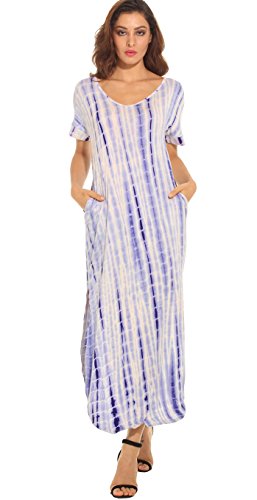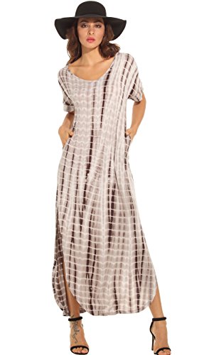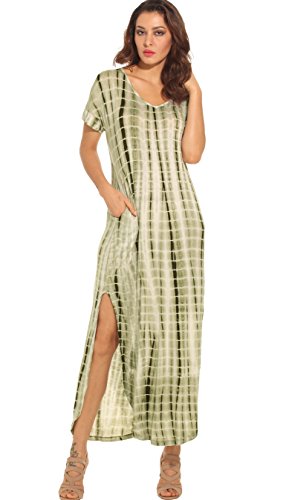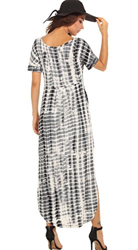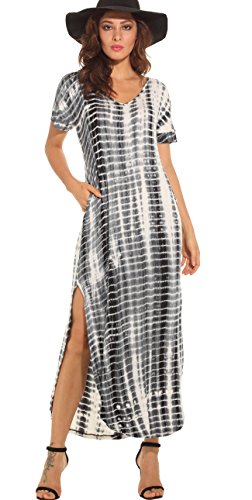 Womwen's Casual Maxi Short Sleeve Split Tie Dye Long Dress