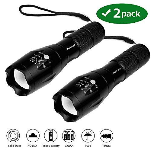LED Tactical Flashlight - Wsiiroon 1600 Lumen XML-T6 Handhold Flashlight-Portable, Zoomable, Waterproof, Super Brightness with 5 Light Modes for Indoor and Outdoor Use, 2 pack (Batteries Not Included)