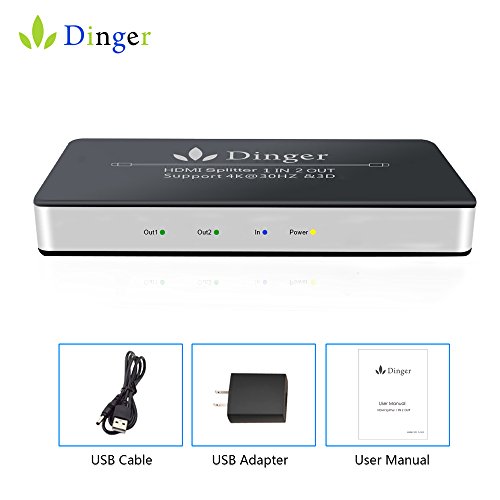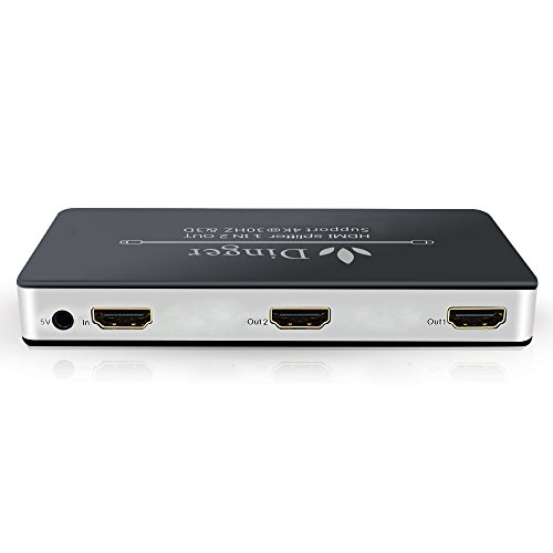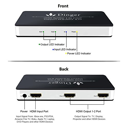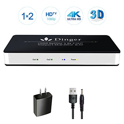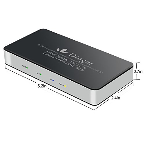 Dinger HDMI Splitter 1 In 2 Out 1 x 2 Splitters with AC Power Adapter, Splitter HDMI Supports 4k, 1080p, 3D (1 x 2 HDMI Splitter)
