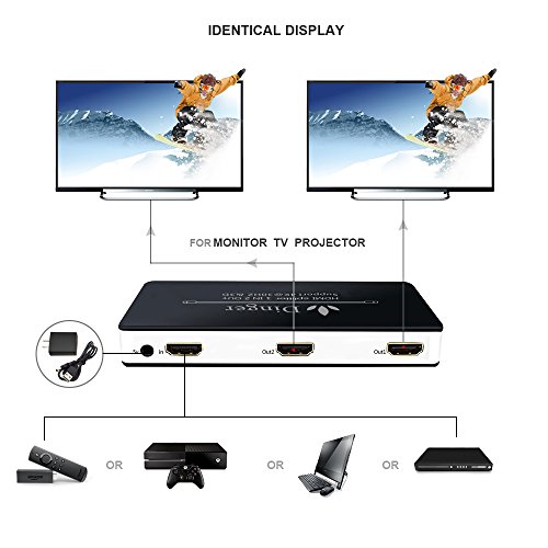 Suitable for: HDMI splitter compatible with Xbox One, Cable Box, 4K TV, Projector, HDMI LCD, DVB receiver, TFT monitor, Blu-Ray, DVD or HD-DVD players etc.