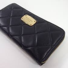 - Title : Michael Kors Fulton Hamilton Quilt Black Soft Genuine Leather Zip Around Wallet
