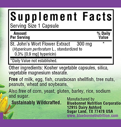 -. Binding : Health and Beauty -. Brand : Bluebonnet -. EAN : 0743715013971 -. Feature : A clean and gentle water-based extraction method is employed to capture and preserve St. John's most valuable components / Available in easy-to-swallow caplets / Truly vegetarian/vegan formula -. IsAdultProduct : 0 -. Label : BlueBonnet -. LegalDisclaimer : ♦These statements have not been evaluated by the Food and Drug Administration. This product is not intended to diagnose, treat, cure or prevent any disease. -. Manufacturer : BlueBonnet -. Model : 743715013971 -. MPN : 1397 -. NumberOfItems : 1 -. PackageQuantity : 1 -. PartNumber : 1397 -. ProductGroup : Health and Beauty -. ProductTypeName : HEALTH_PERSONAL_CARE -. PublicationDate : 2015-11-19 -. Publisher : BlueBonnet -. ReleaseDate : 2015-11-16 -. Studio : BlueBonnet -. Title : BlueBonnet St. john's Wort Flower Extract Supplement, 60 Count -. UPC : 743715013971