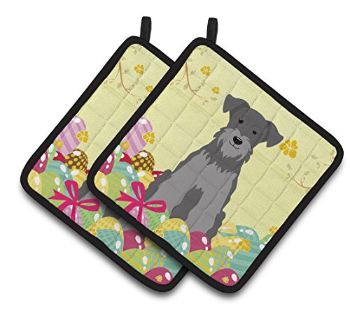 Caroline's Treasures BB6052PTHD Easter Miniature Schanuzer Pair of Pot Holders, 7.5" x 7.5", Multicolor