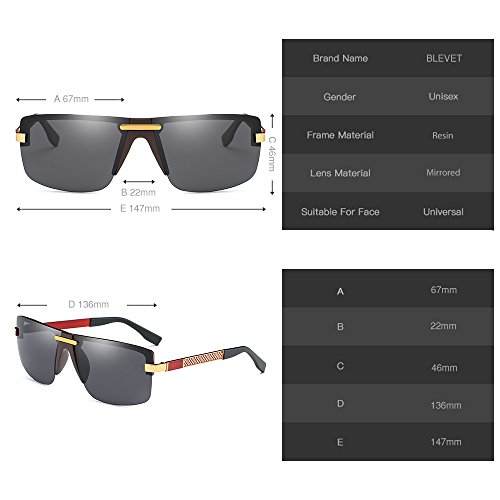 BLEVET frame design and manufacturing are equally very good, no matter under what circumstances, can make people wear comfortable. Product Features: HD Polarized Lens - 100% UV400 protection lens block 100% Harmful UVA,UVB & UVC Rays. Polarized lens eliminate glare and reduce Eye Fatigue .