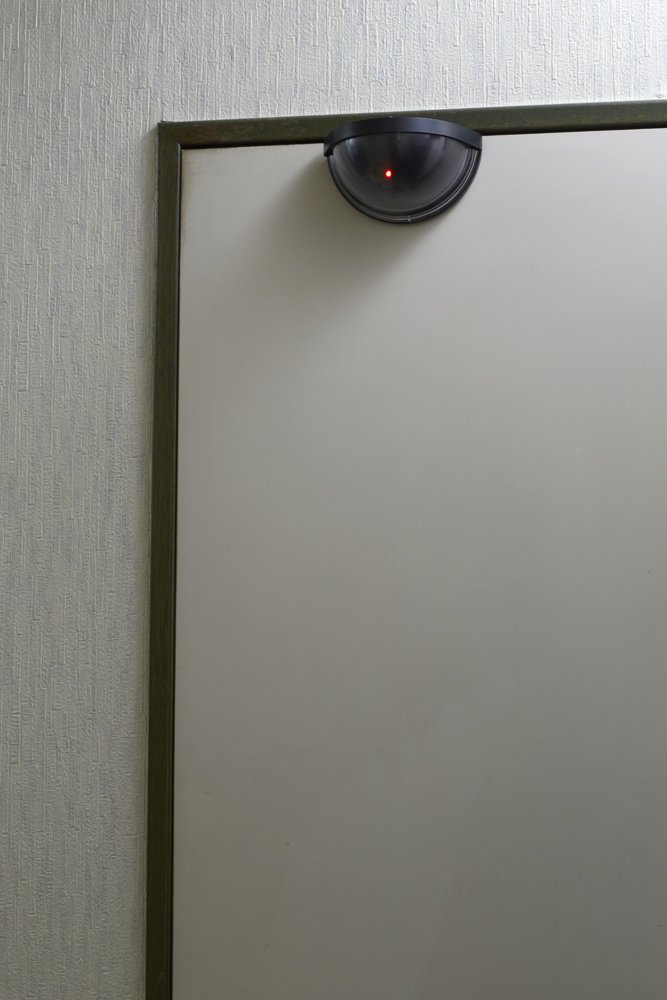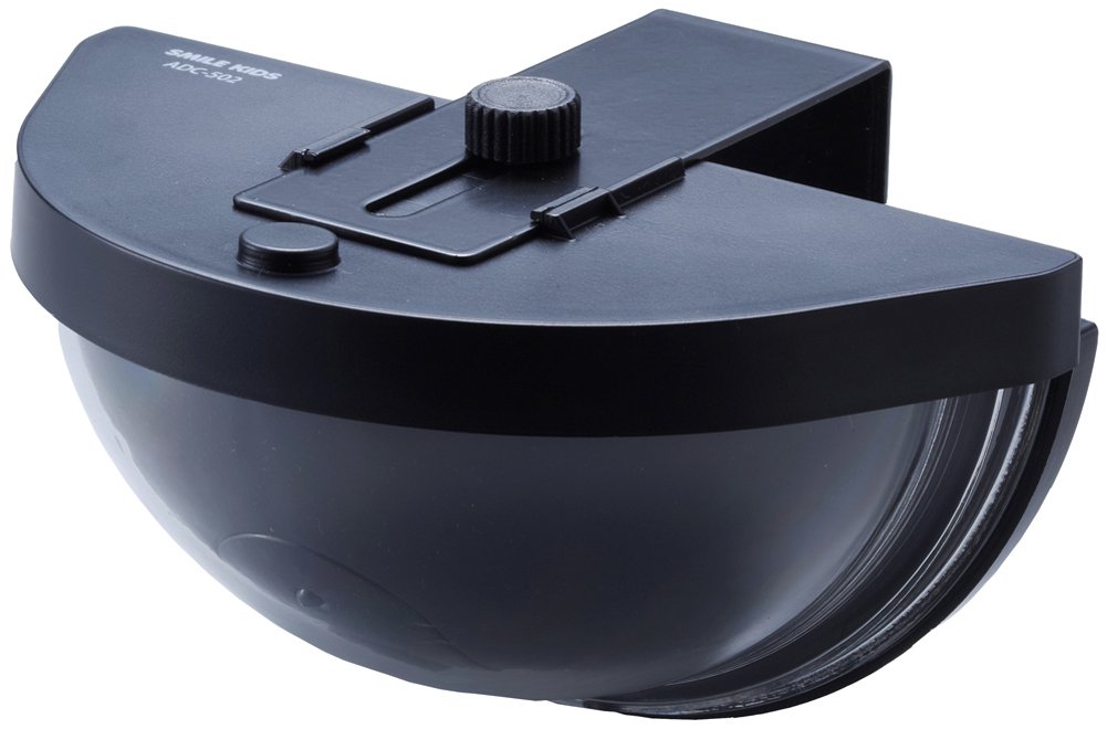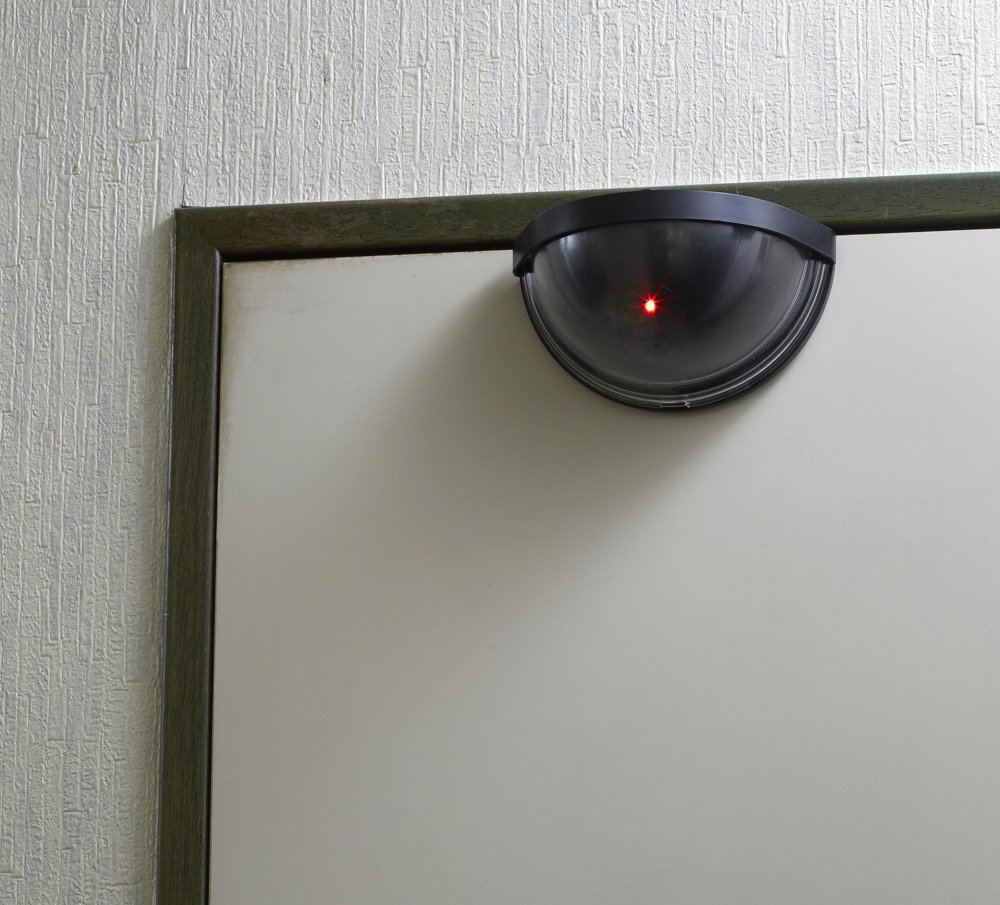 A dummy camera in which the sensor detects and a red LED flashes when a person crosses the front