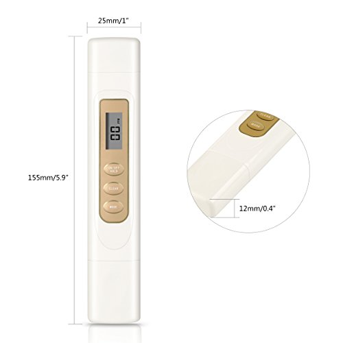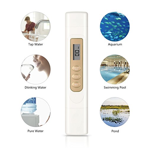 -. Feature : ➤ WATER QUALITY TESTER: Digital dual test meter, measure TDS, shift Degrees Celsius to Fahrenheit. Can test purity of water quality at any time. / ➤ FAST AND ACCURATE READOUT: Come with large and easy-to-read LCD screen, quickly readout in 10 seconds, measuring range of 0-4999 ppm, 1 ppm resolution, +/- 2% high accuracy due to its advanced microprocessor technology. / ➤ HOLD FUNCTION: Save measurements for convenient reading and recording, press "HOLD" button then remove from test solution. / ➤ AUTO SHUT OFF: 60 seconds Auto Shut Off feature to save batteries energy, user-friendly. / ➤ WIDE APPLICATION: This TDS testing meter is a great tool for drinking water, water filtration and purification, hydroponics (test your nutrients), aquariums, RO/DI systems, pools and spas, and more.