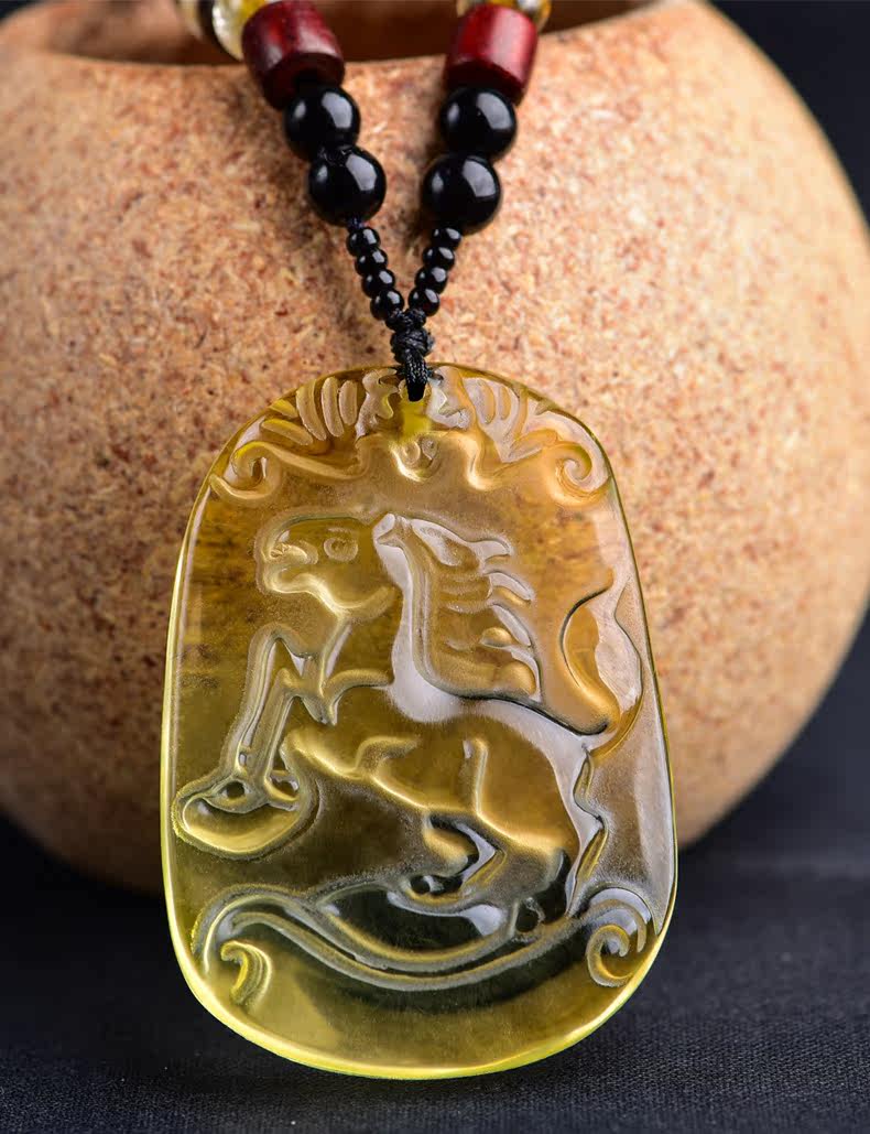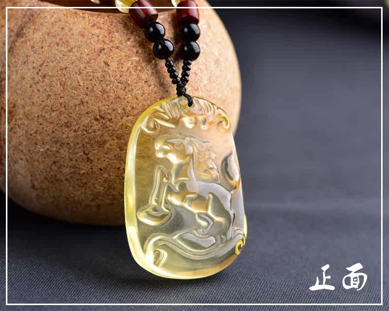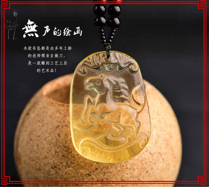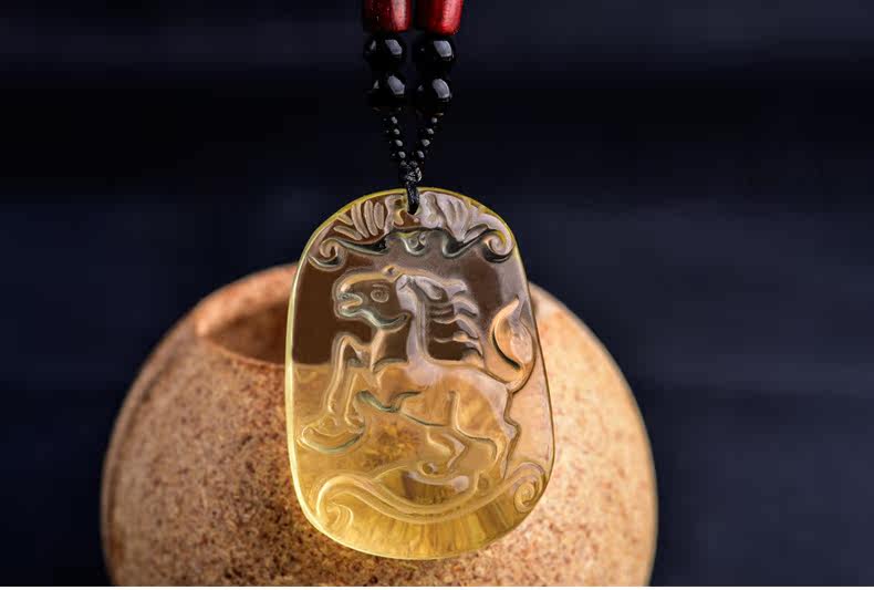开光天然黄水晶吊坠十二生肖属马开运吉祥物福禄男女款项坠
