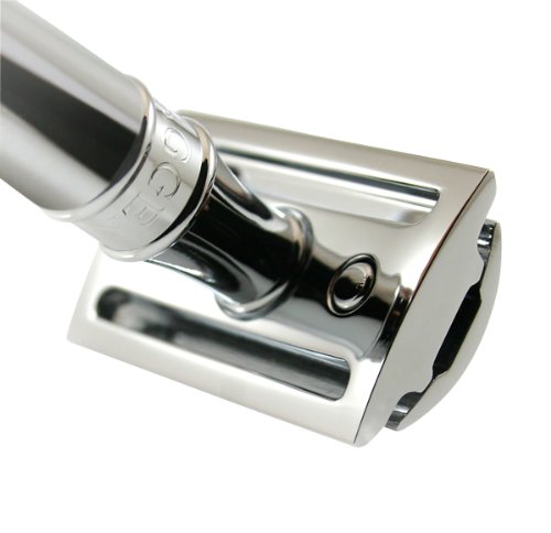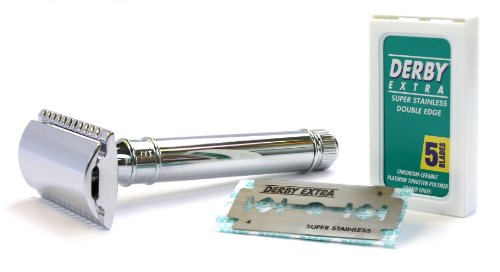 This fabulous traditional double edge safety razor is fitted with the latest precision manufactured Edwin Jagger DE razor blade head creating great interest among experienced wet shavers requiring a close and accurate wet shave with finished results comparable to the original straight cut throat razor. The classic closed comb head, expertly engineered caps the highly polished chrome plated solid brass tubular handle with the Edwin Jagger name embossed around the collar. With an Edwin Jagger traditional double edge safety razor you can achieve a very close shave helping to reduce ingrowing hairs. Each DE razor is supplied with 5 Derby safety blades so the razor is shave ready.Feature