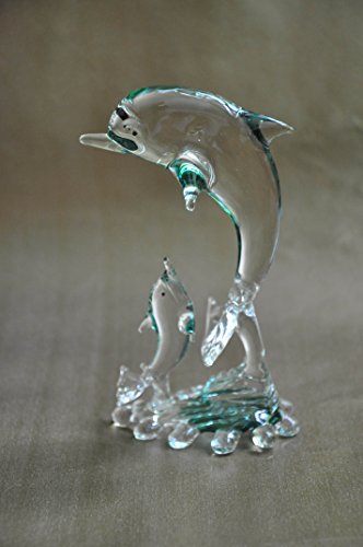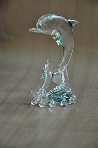 -. Feature : Large Handmade Mother and Baby Glass Dolphin set. The Glass dolphines are made using Flamework technique. The colors are extremely rich and each piece and lot of detail work. / A beautiful gift for Mothers Day or for any other family members and friends. Your loved ones will not only love this gift but will treasure it. / Made with high quality glass. Since each piece is handmade small variations are possible and acceptable. / Measures 3.0'' (L) x 2.0'' (W) x 5.6'' (H) inch. A large piece which will look absolutely stunning on your table, or desk , mantle or any other place you can think of. / Made in India.