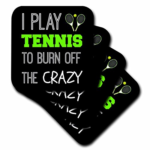 3dRose I Play Tennis to Burn Off The Crazy on black Background - Soft Coasters, Set of 4 (cst_221883_1)