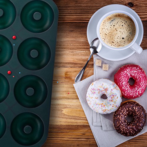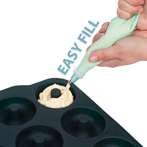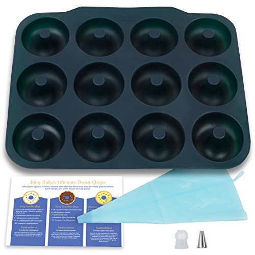 Large Luxury Silicone Donut Pan - BPA-Free, SUPER-NON-STICK, 12 Full Size Doughnut Mold, Bagel Pan with Bonus Pastry Bag and Recipe Card.
