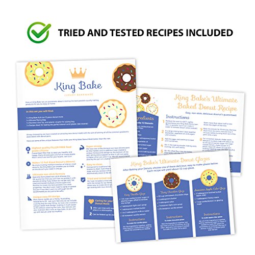 CONVENIENT, DISHWASHER SAFE PAN WITH AWESOME BAKED DONUT CAKE RECIPE CARD - Bake 12 large donuts at once - no more back and forth to the oven baking multiple batches, or washing multiple pans. Our nonstick donut maker is easy to clean, and is dishwasher & freezer safe! We've also included a FREE tried and tested baked donut recipe card and recipes for 3 delicious glazes. Follow our instructions and you're guaranteed to have delicious, healthy, baked donuts that are easy to make and turn out.