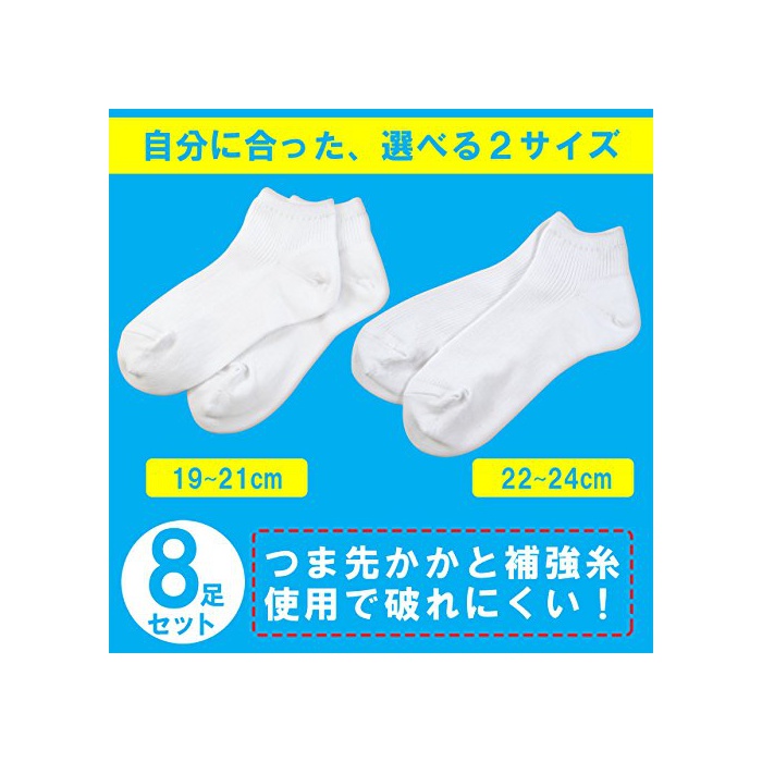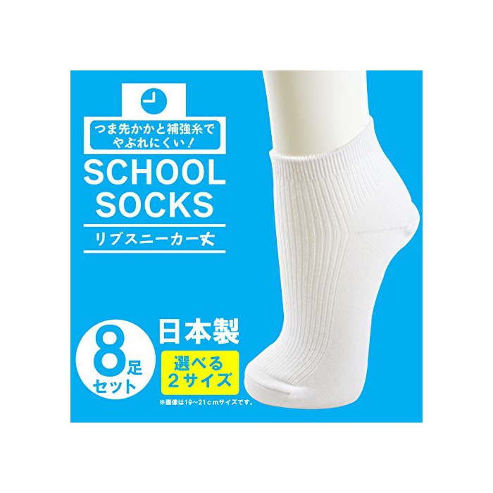 원본상품명: スクルソックス スニカ丈 白 リブ柄 8足セット つま先かかと補 日本製 15A-108