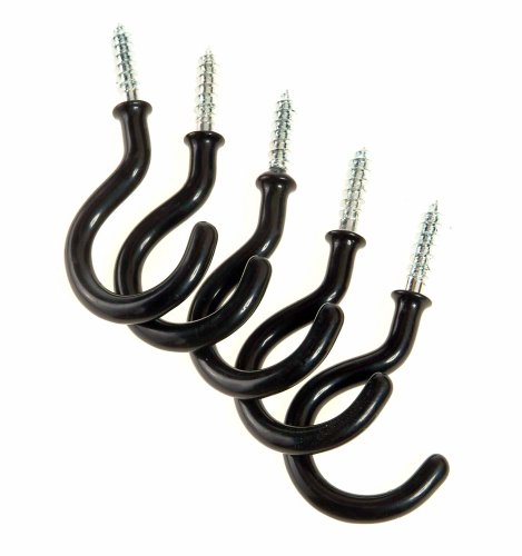 Amertac 514BLCC Vinyl Coated Ceiling Hooks, Black,5 Hooks per pack